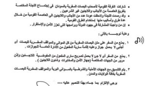 كما أوضحت أن القرار يمنع كذلك سفر اللاجئين الذين لا يملكون تصاريح سارية من مفوضية اللاجئين أو إذن مرور من جهاز الأمن والمخابرات وشؤون اللاجئين.